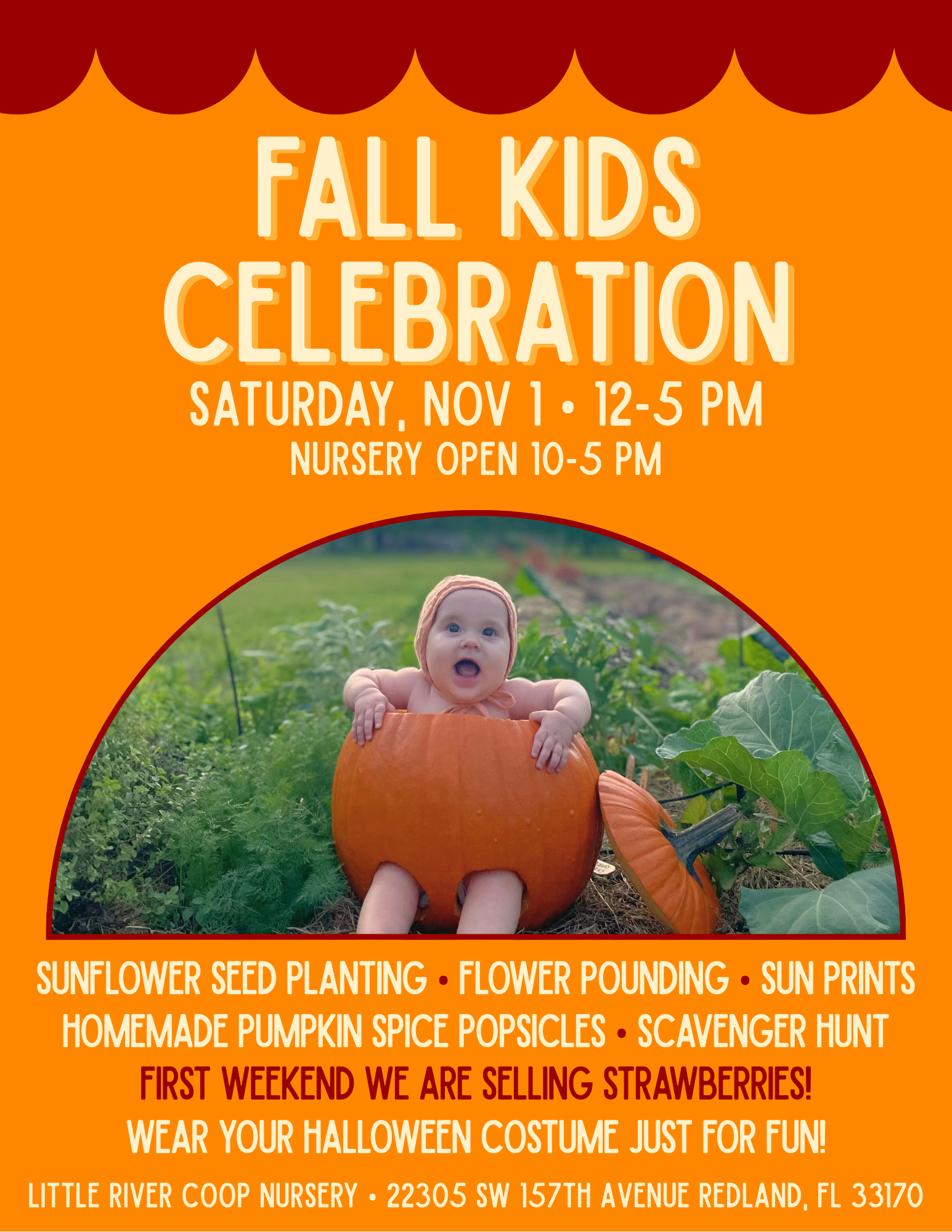 Fall Kids Celebration Saturday, November 1, 2025 12:00 PM 5:00 PM Little River Cooperative 22305 SW 157th Ave Miami, FL, 33170 United States (map) Google Calendar ICS